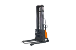 Semi-electric straddle stacker with 3300lb capacity. Ideal for warehouses, stock rooms, and docks. Lifting height up to 118 inches. Durable and efficient.